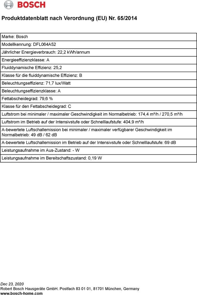 – Fettfilter-Effizienzklasse: C*