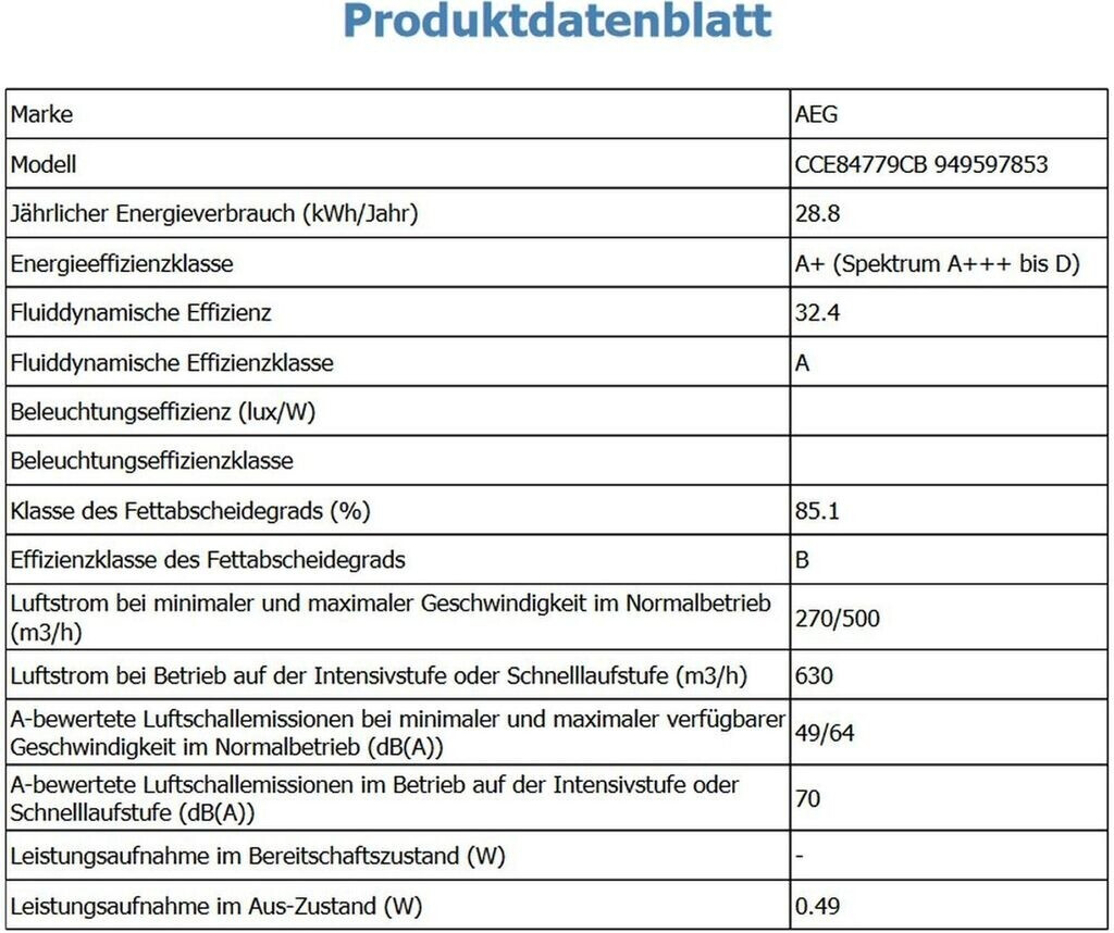 - Jährlicher Energieverbrauch: ca. 28,8 kWh, Energieeffizienzklasse: A+