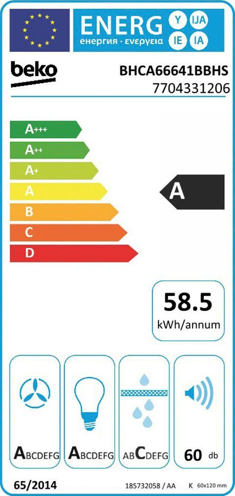 Beko BHCA66641BBHS Schräge Dunstabzugshaube 60 cm Schwarz