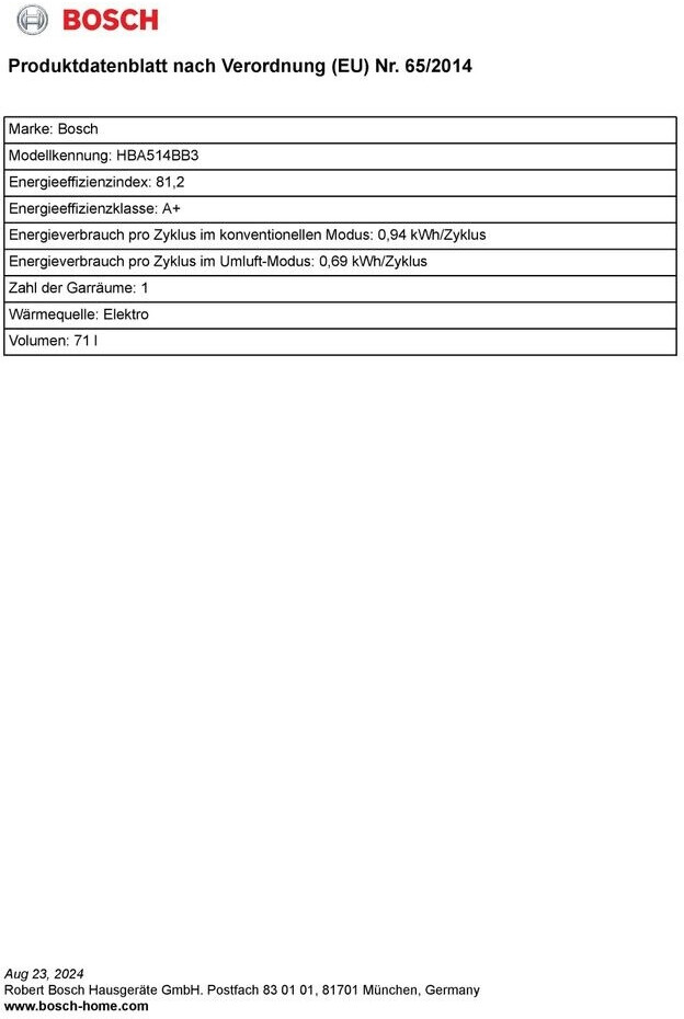 | Nutzbares Volumen der Backröhre | 71 Liter | ||