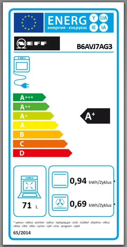 • Energieeffizienzklasse (gem. EU Nr. 65/2014): A+(auf einer