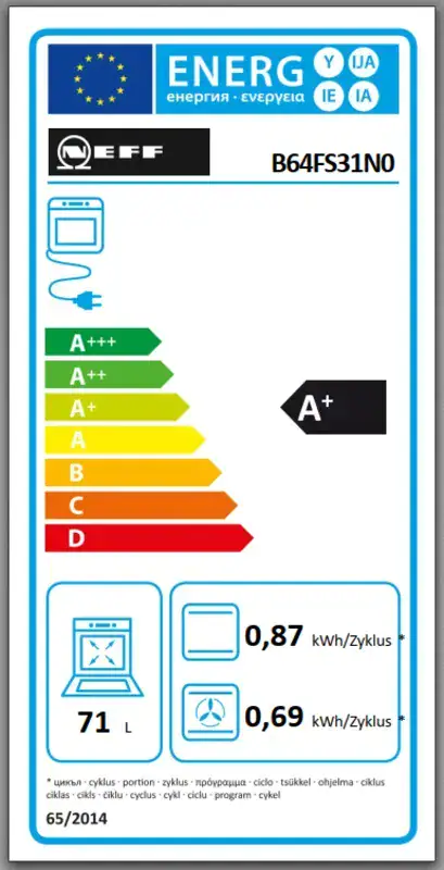 • Energieeffizienzklasse (gem. EU Nr. 65/2014): A+(auf einer Energieeffizienzklassen-Skala von A+++ bis D)