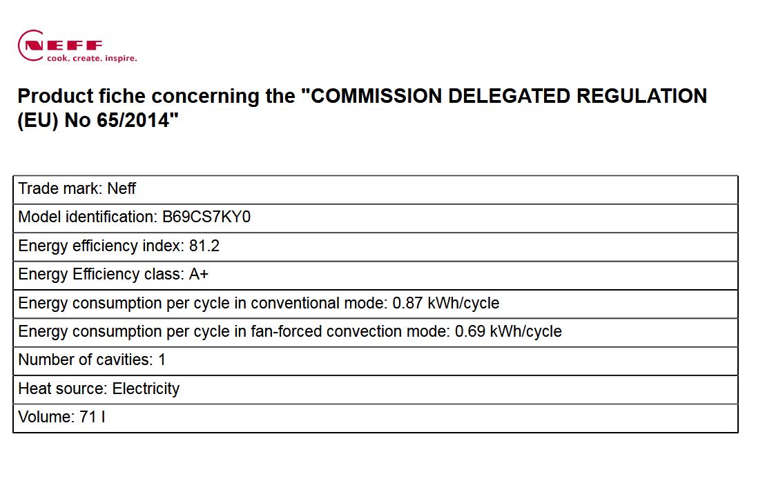 Energieverbrauch pro Ober-/Unterhitze Zyklus (2010/30/EC):