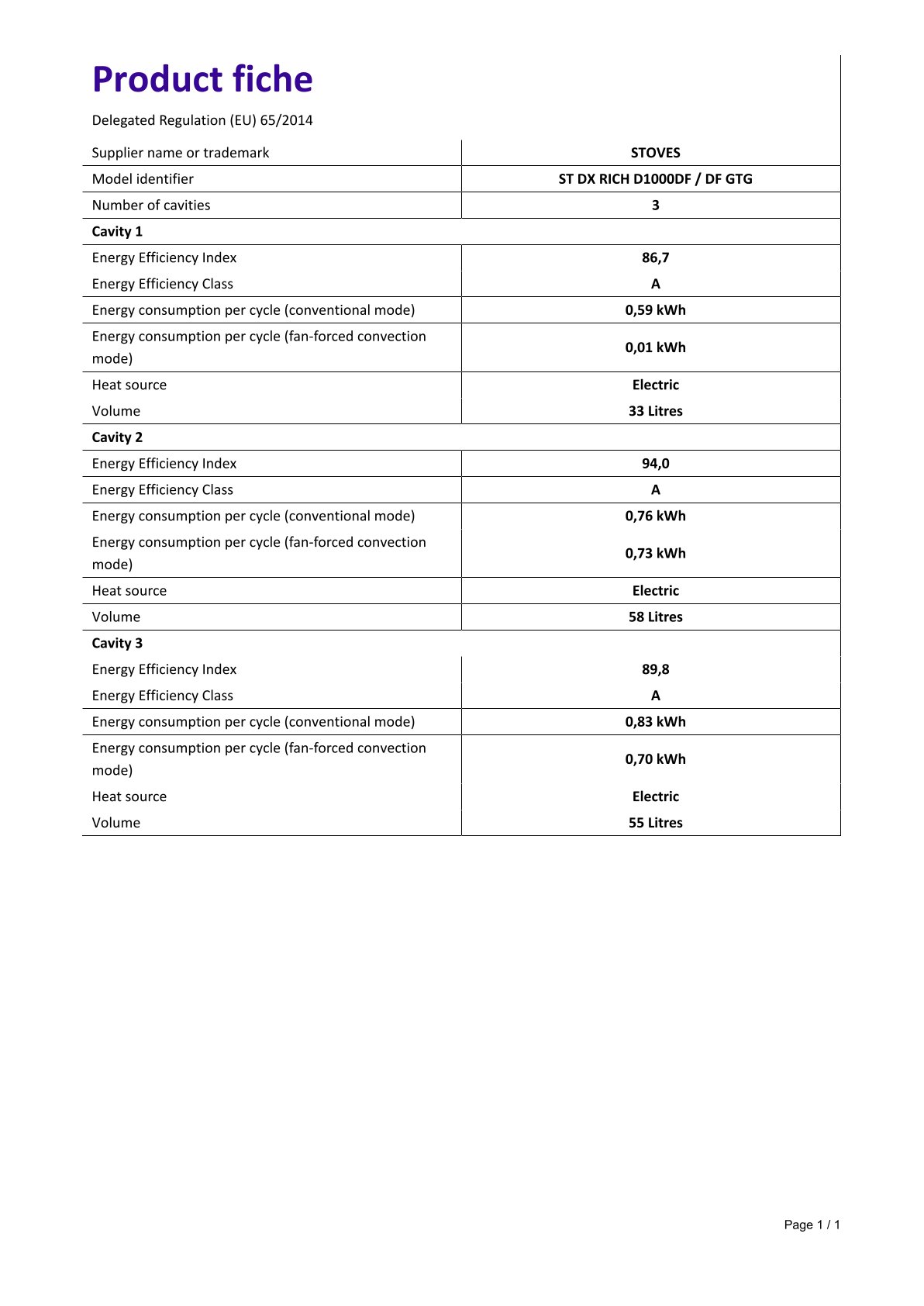 Ausstattung Hauptbackofen 70 l (oben rechts)